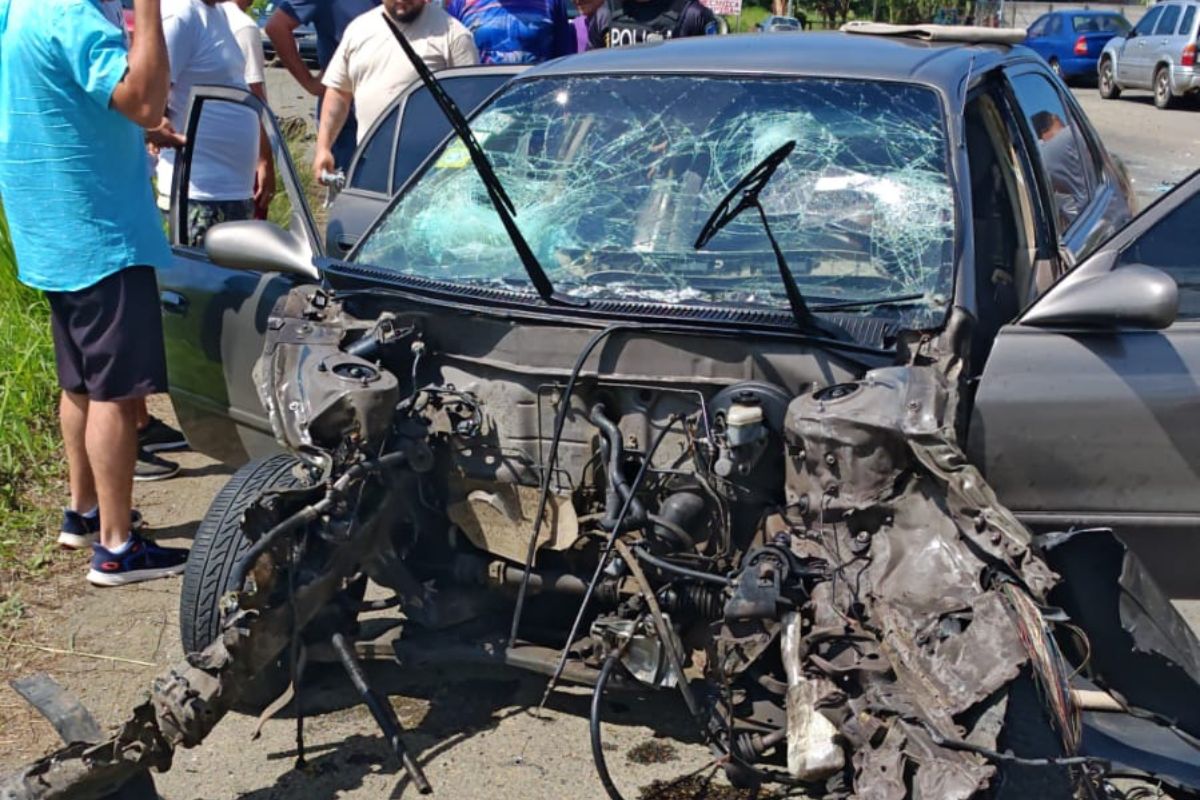 Según el reporte preliminar, un vehículo liviano chocó contra un remolque, provocando que el auto terminara a un costado de la vía con severos daños visibles en su estructura.