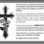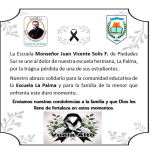 “Nuestro abrazo de solidaridad para la comunidad educativa de la Escuela La Palma y para la familia del menor que enfrenta este momento difícil”, dijeron.