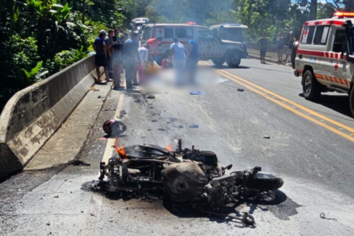 Un accidente de tránsito entre una motocicleta y un vehÃculo liviano mató a 2 personas y dejó a un hombre en estado crÃtico la mañana de este miércoles en Punta Mala, en Puerto Cortés de Osa, Puntarenas.