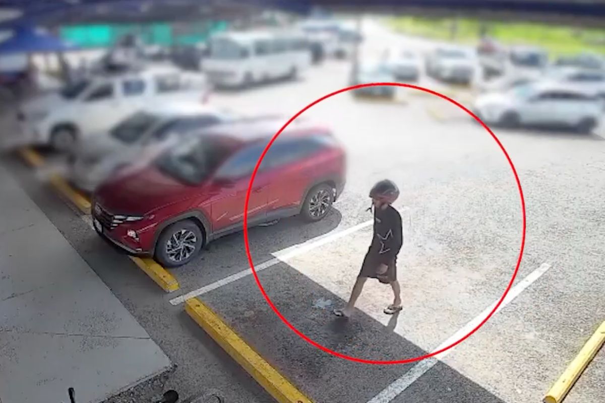 Según la descripción brindada por las autoridades, el sospechoso es un hombre de tez morena clara, complexión delgadaquien llevaba un Camiseta negra de manga larga con logo blanco en el lateral, pantalones cortos negros, sandalias y un casco en la cabeza.